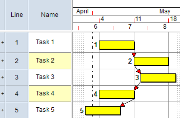 In the following illustration, the link between tasks 3 and 4 is a Start-to-Finish link. This link would fail this metric. All the other links are of different types (Finish-to-Start, Start-to-Start and Finish-to-Finish) and would pass this metric:
