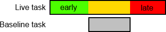 Items that start earlier than the corresponding task in the baseline are highlighted for the time period between the start of the live task and the start of the baseline task, using the Early colour that has been specified on the Timeline Behaviour tab of the IFC Model Properties dialog.